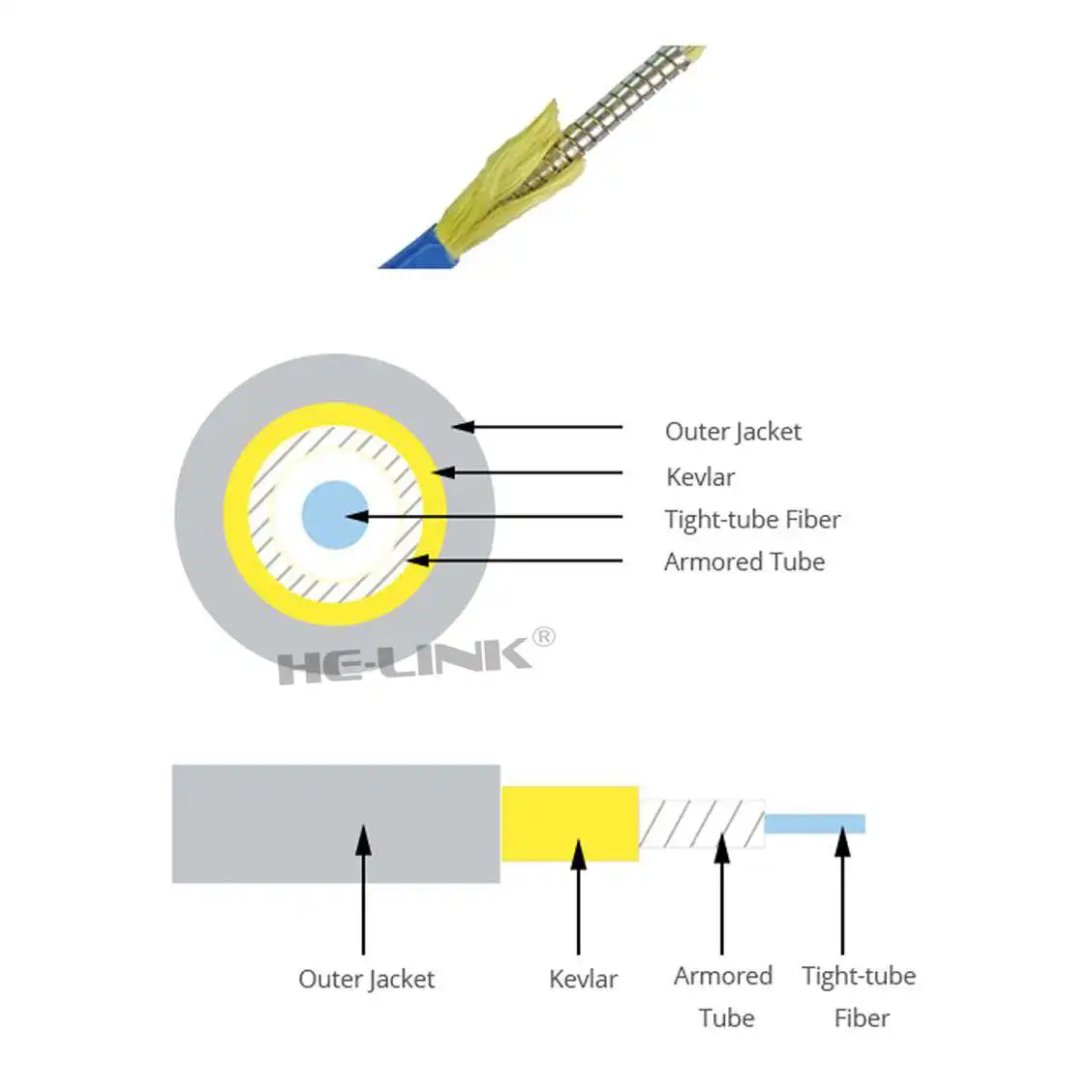 LODFIBER 600M ST-ST Outdoor Armored Singlemode 8 Strands Fiber Optic Cable Patch Cord 9/125